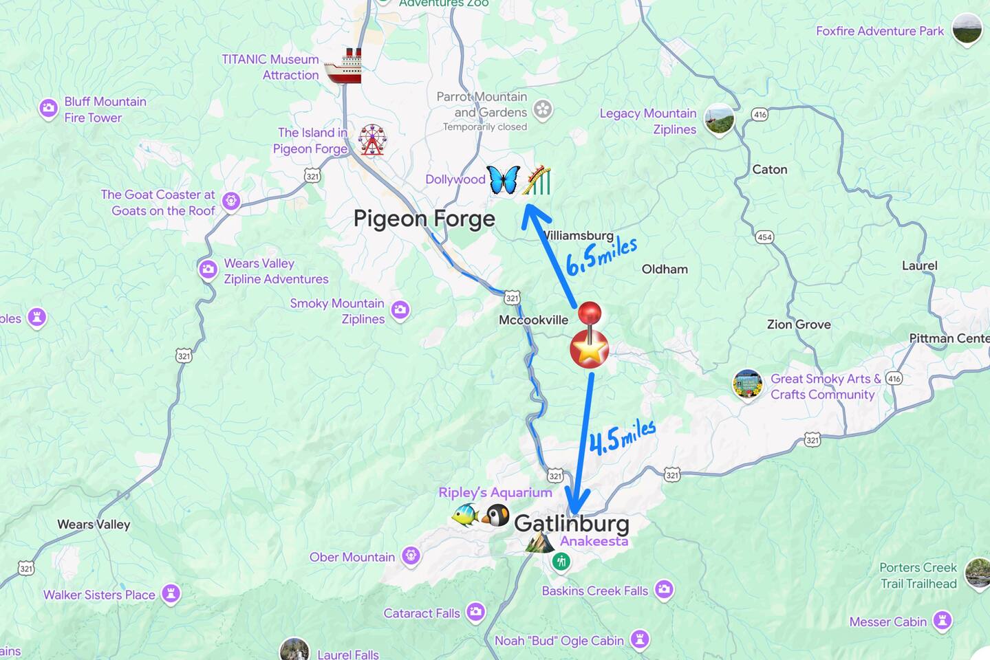 ๐ฆ The Cozy Fox (located in Sky Harbor) gives itโs guests a scenic drive either heading north to Pigeon Forge or south to Gatlinburg - a few miles either way! Close to all major attractions, and only 6.5 miles to Dollywood ๐ก. Youโll enjoy a true mountain cabin (giving you and your guests a Smoky Mountain experience!), but with 100% paved and well-maintained roads.